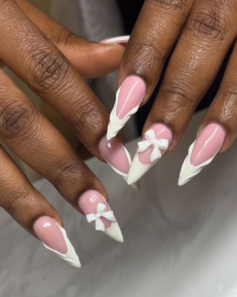 Tips I’ve picked up: avoid covering the whole nail in bows—accent nails are enough. Also, if you’re planning a manicure that needs to last a week or more, gel nails with bows tend to hold up better.