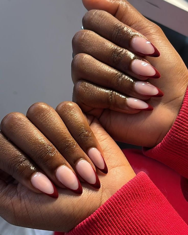 French tips never really go away, but this season it’s all about making it moody. Instead of classic white, burgundy is taking over. It’s moody, sophisticated, and still minimal enough for everyday wear. The micro-French feels modern while giving just a hint of drama.
