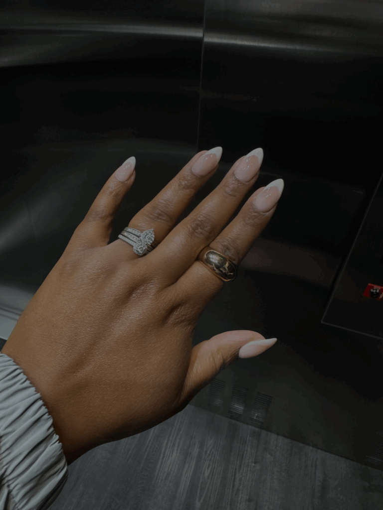 This style is also perfect if you love shorter nails or natural shapes. It makes your hands look polished without screaming “statement manicure.” Plus, wearing gold rings really takes it up a notch.