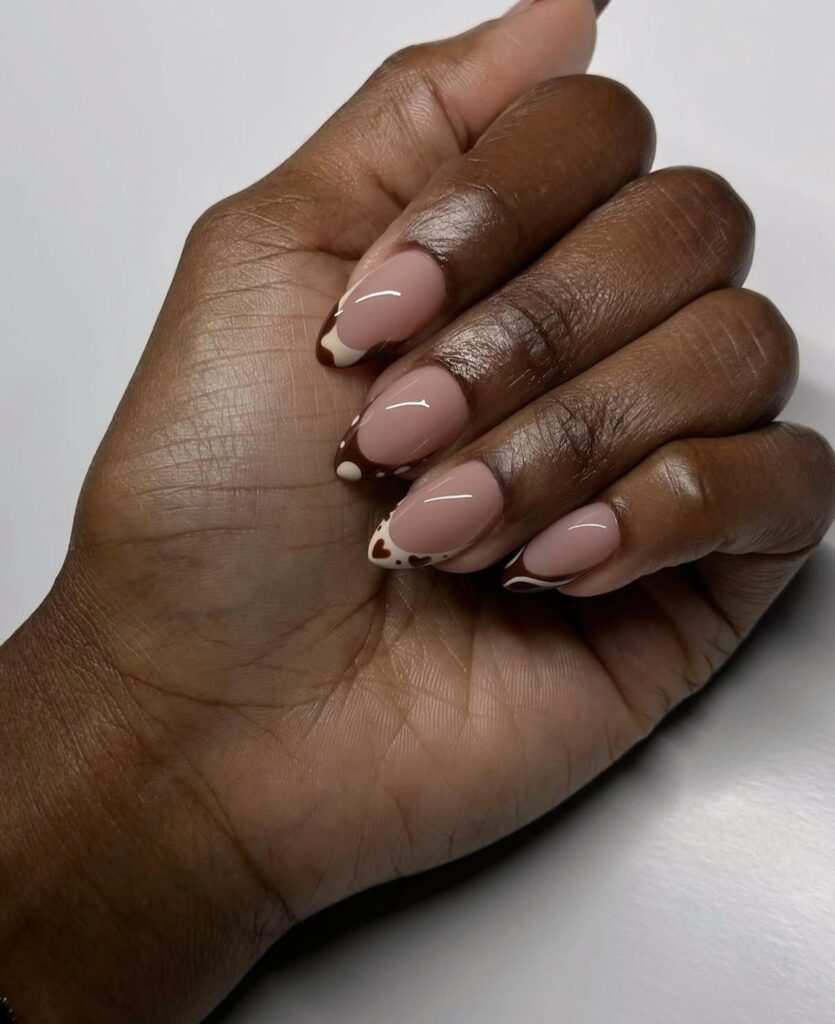 If you want something more subtle, try a warm caramel or latte shade on the tips. It still gives fall energy but feels lighter for everyday wear when it’s not fully sweater weather yet.